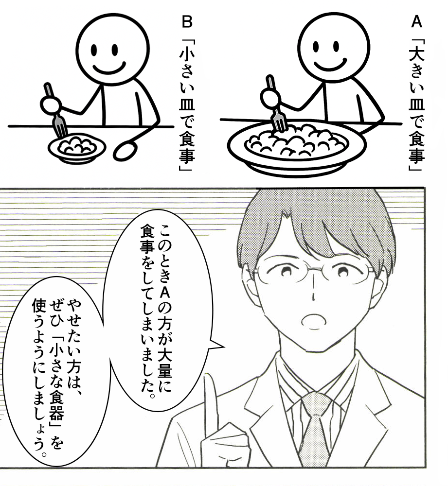 ですのでみなさんも、ぜひぜひ家で食事をするときに「小さな皿」を使うように心がけてみましょう。