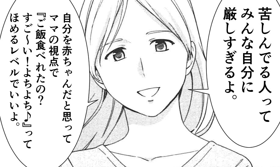 究極、自分は「生まれたばかりの赤ちゃん」であり、そしてそれを見ている「優しい母親」や「優しい父親」という視点で考えてみてはいかがでしょうか。