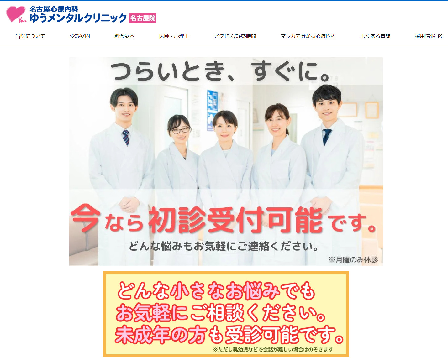 最後に、私たちの「名古屋心療内科ゆうメンタルクリニック名古屋院」について紹介させてください。
