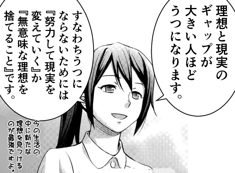 すなわち、うつになるかどうかは、今の自分の客観的な立場に関係なく、「理想とのギャップ」によって変わってくる、ということ。
