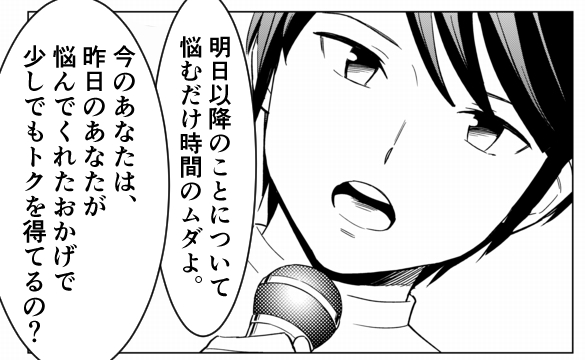 未来のあなたは、あなたが今「悩む」ことによって、何かトクをするのでしょうか。