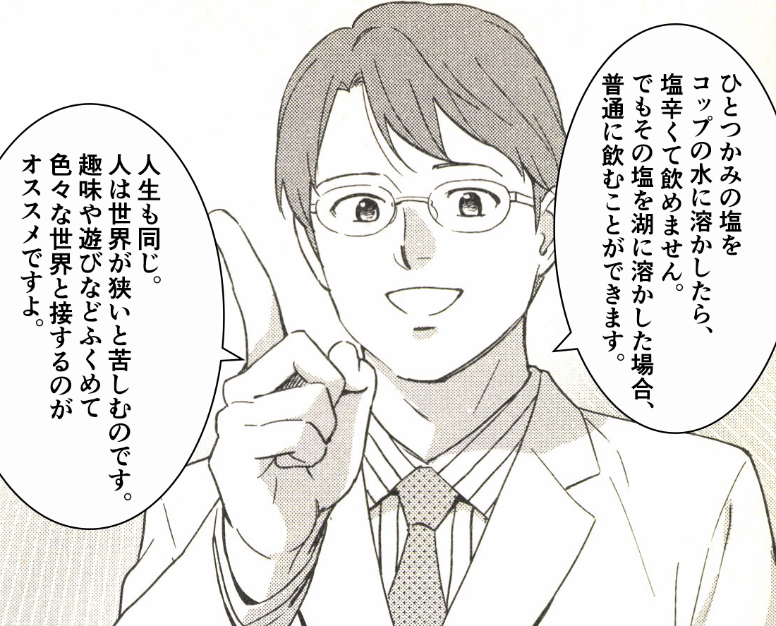 「苦しみは塩のようなものだ。同じ量でも、器の大きさによって受け止め方は変わる」