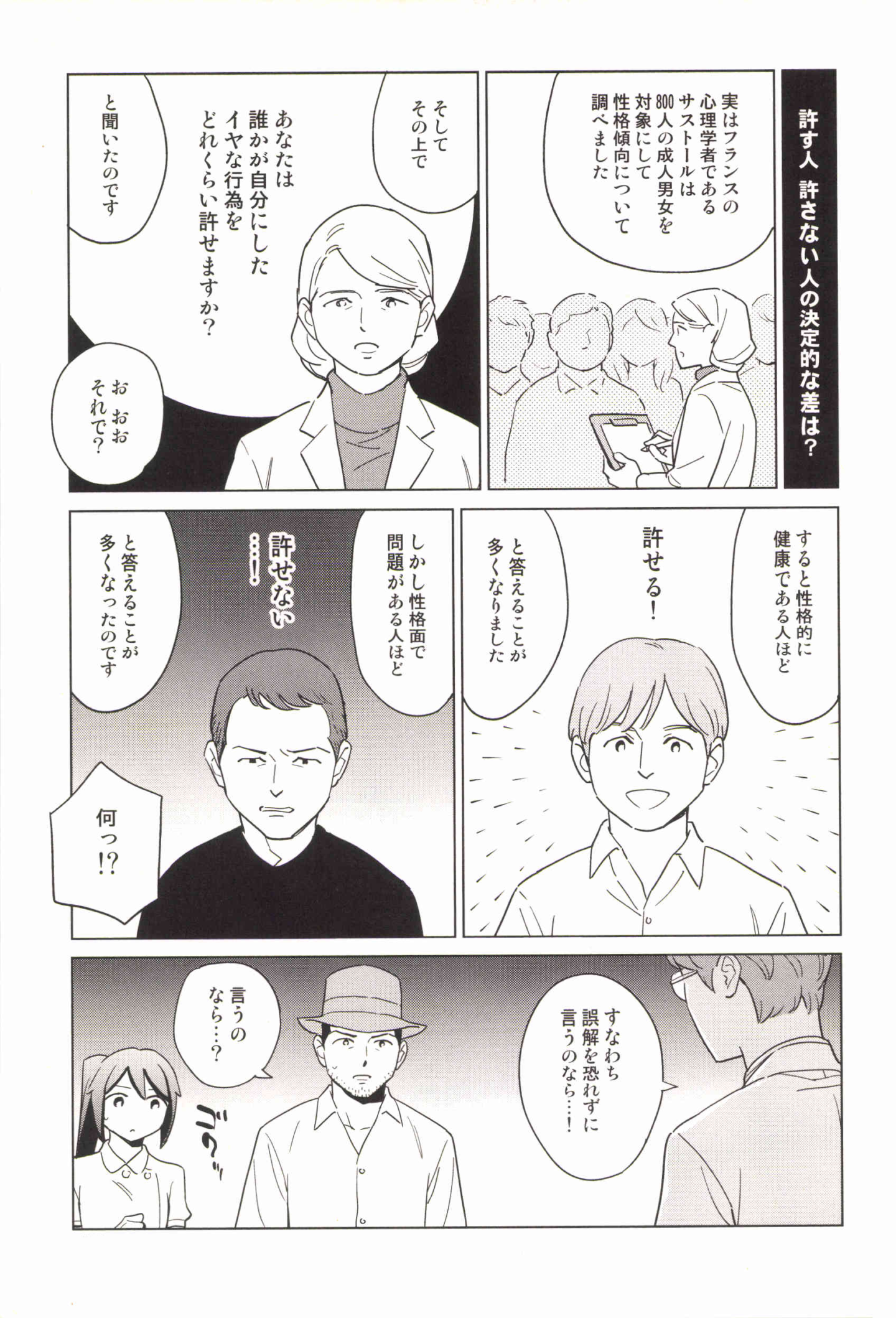 フランスで行われた800人規模の調査では、性格的に安定している人ほど「許せる」と答え、