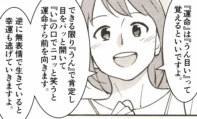 - 運命は「うん」+「目」+「い」=『うん目い』