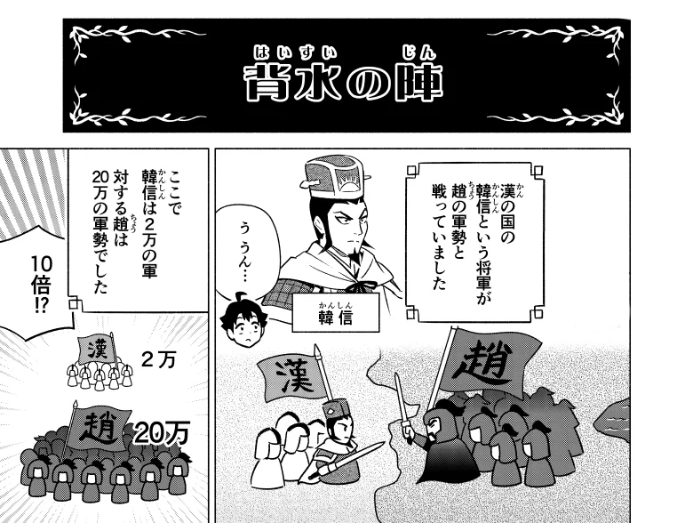 中国の将軍・韓信がとった有名な戦法に「背水の陣(はいすいのじん)」があります。