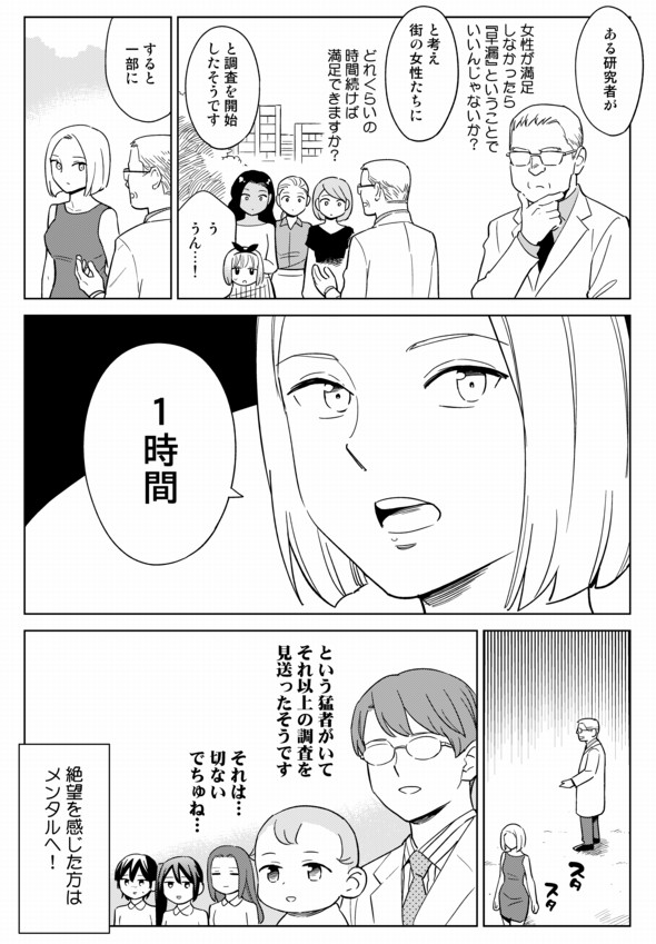 マンガのラストにもあったように、「女性が満足するまで1時間必要」と語る調査がありましたが、