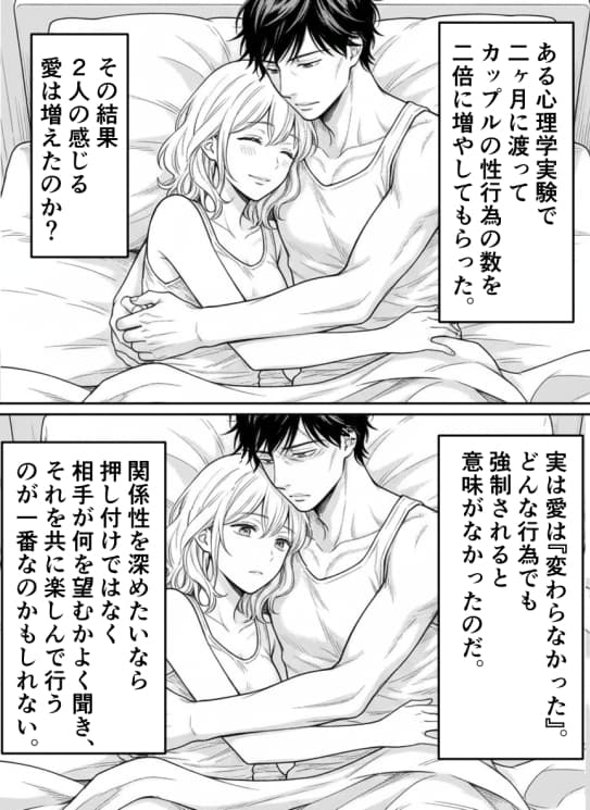 「カップルの性行為の回数を増やしたら、絆や愛情はより深まるのか?」