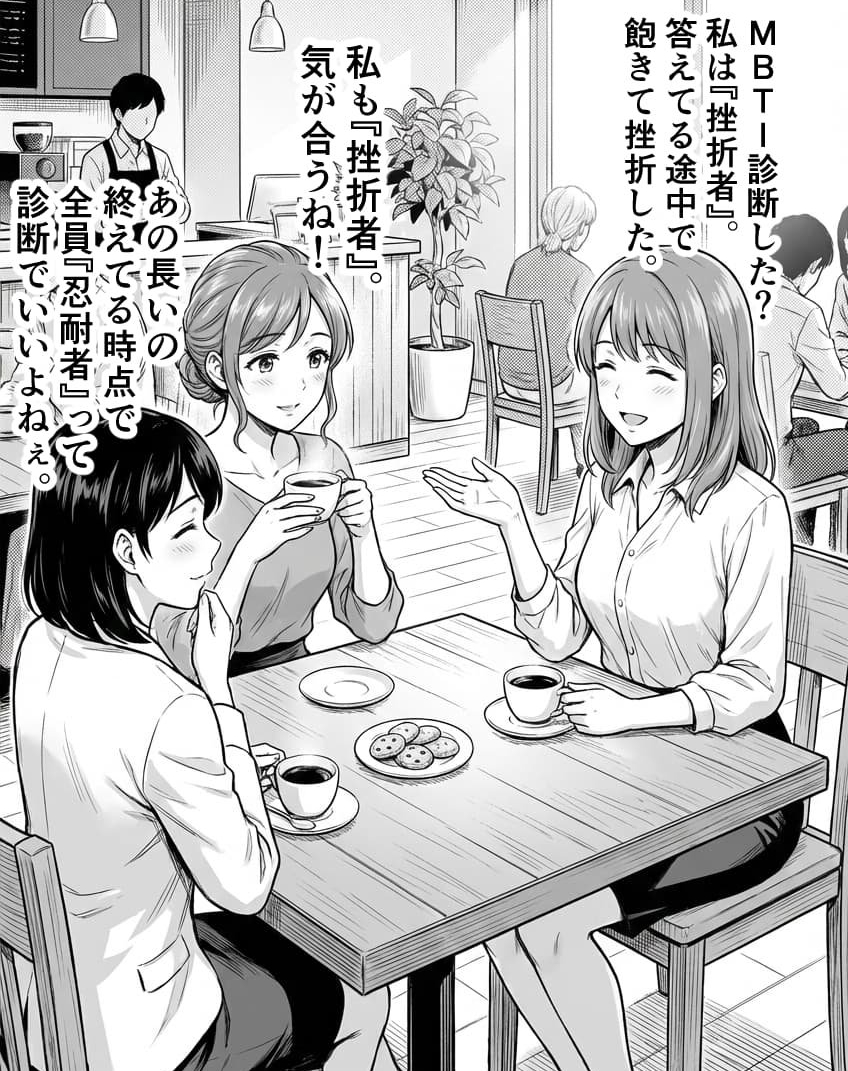 MBTI性格テストの結果を語り合う三人。~名古屋心療内科マンガ