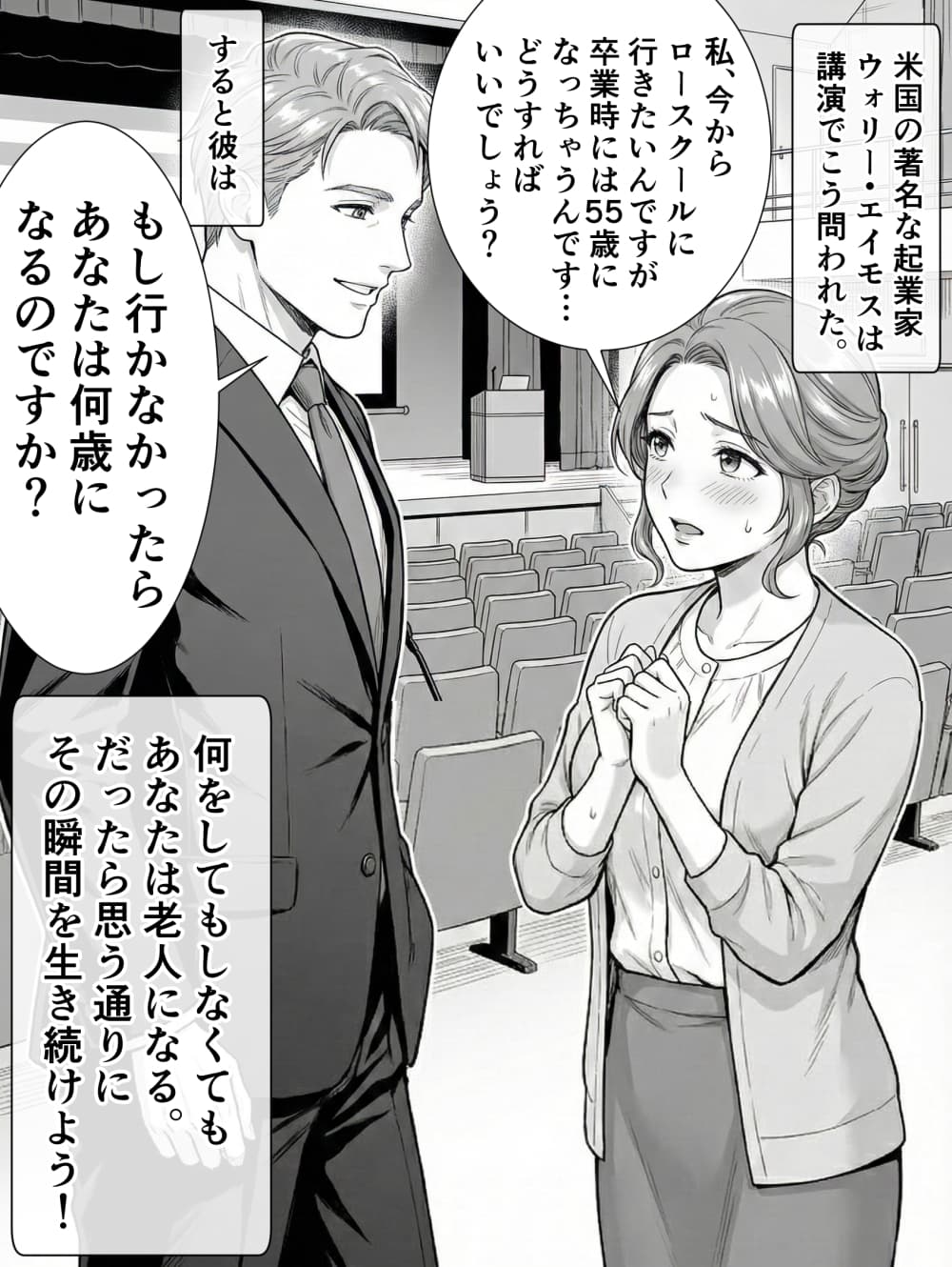 「私はずっとロースクール(法科大学院)に行きたいと思っていました。でも、ためらっているんです。だって、もし入学できたとしても、卒業する頃には私は55歳になってしまうんですよ」